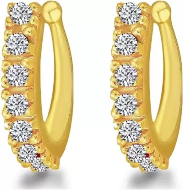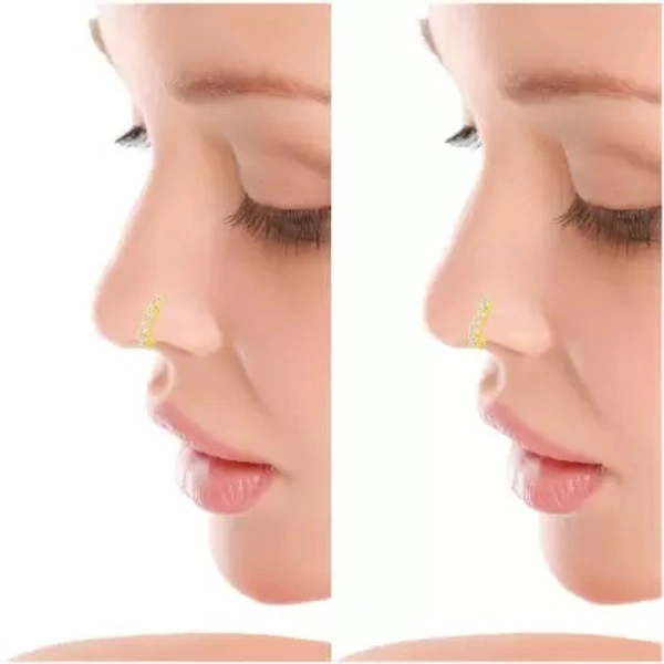 MEENAZ Cubic Zirconia, Diamond, Crystal Gold-plated Plated Copper, Brass, Stone Nose Ring (Pack of 2)