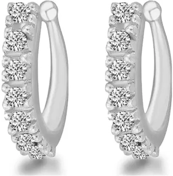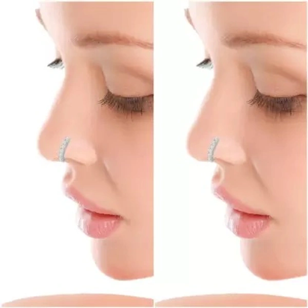 MEENAZ Cubic Zirconia, Diamond, Crystal Silver Plated Copper, Brass, Stone Nose Ring (Pack of 2)