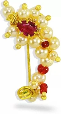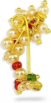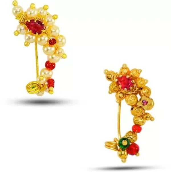 Jewelopia Pearl Gold-plated Plated Mother of Pearl Nose Ring (Pack of 2)