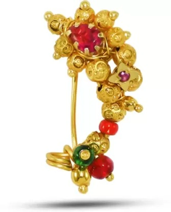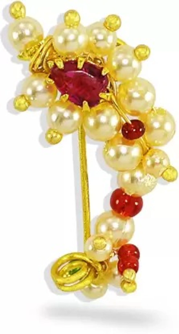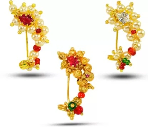 Jewelopia Cubic Zirconia, Pearl Gold-plated Plated Mother of Pearl Nose Ring (Pack of 3)