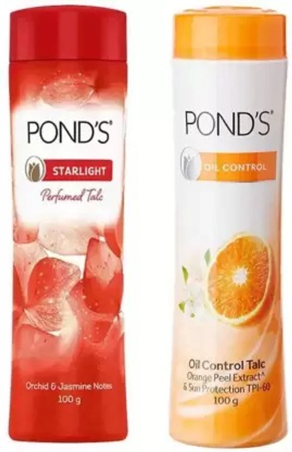 POND's Oil Control & Starlight Talcum Powder - Orange Peel Extract & Sun Protection Tpi-60 Talc (2 x 100 g)