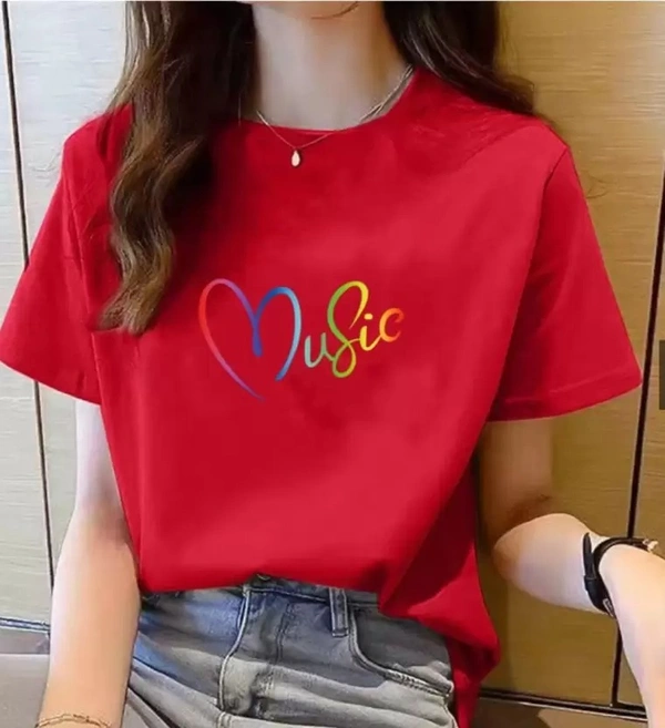 Women Printed Round Neck Cotton Blend