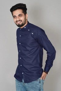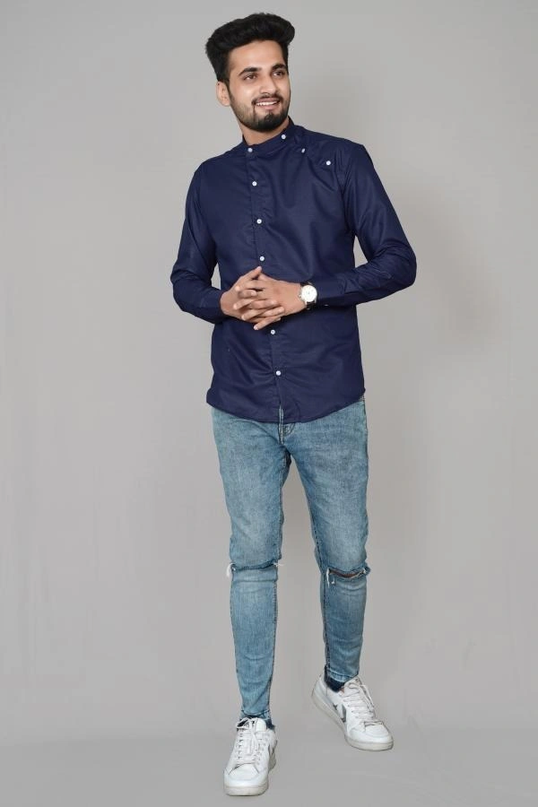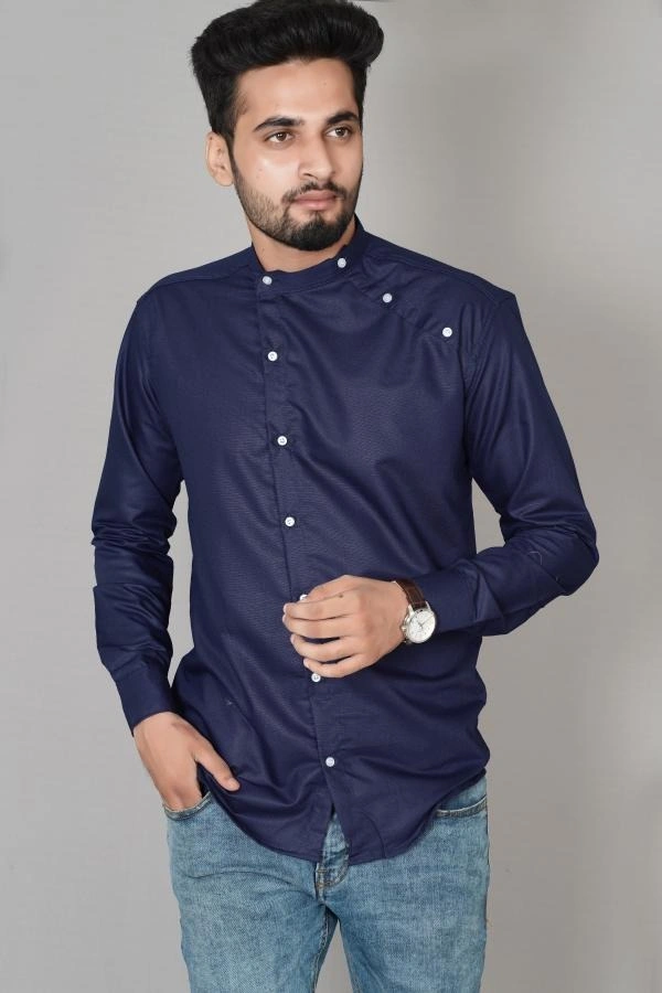 Qlonz store Men Solid Blue Cotton Casual Shirt