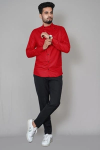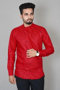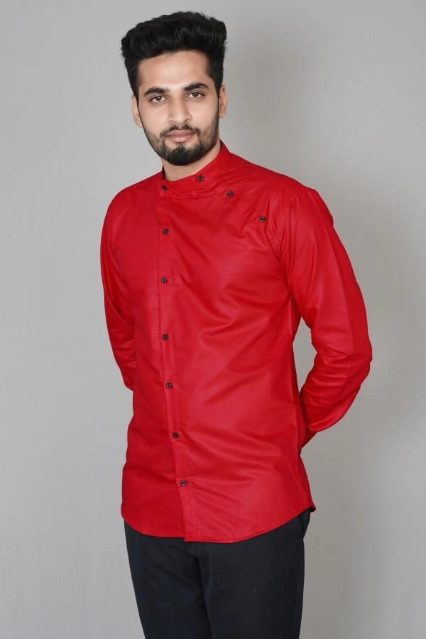 Qlonz store Men Solid Red Cotton Casual Shirt
