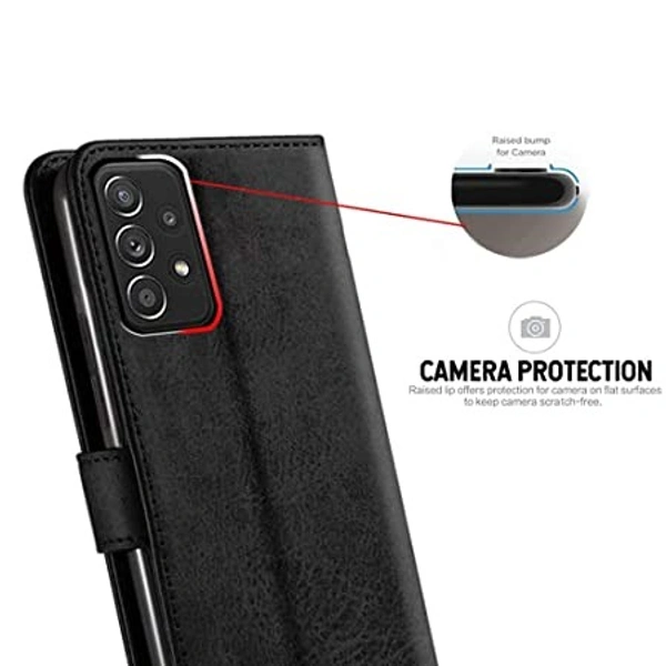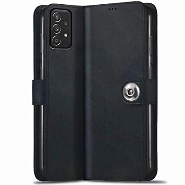 TheGiftKart Flip Back Cover Case for Samsung Galaxy A13 4G | Genuine Leather Finish | Designer Button | Inbuilt Pockets & Stand | Flip Cover Back Case for Samsung Galaxy A13 4G (Black)