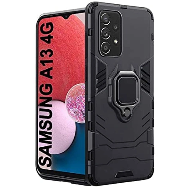 TheGiftKart Tough Armor Back Cover Case for Samsung Galaxy A13 4G Bumper | Ring Holder & Kickstand in-Built | 360 Degree Protection Back Case Cover for Samsung Galaxy A13 4G (Black)