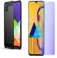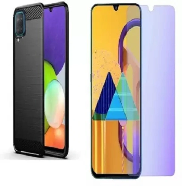 NIMMIKA ENTERPRISES Case Accessory Combo for samsung galaxy a22 (4g)/f22 (4g)/m32 back cover & anti blue tempered glass (TRANSPARENT, Black)