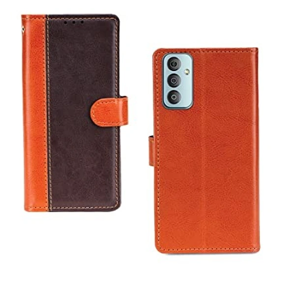 Inktree Samsung Galaxy F23 Flip Case | Premium Leather Finish Flip Cover | with Card Pockets | Wallet Stand |Complete Protection Flip Cover for Samsung Galaxy F23 - Camel and Coffee