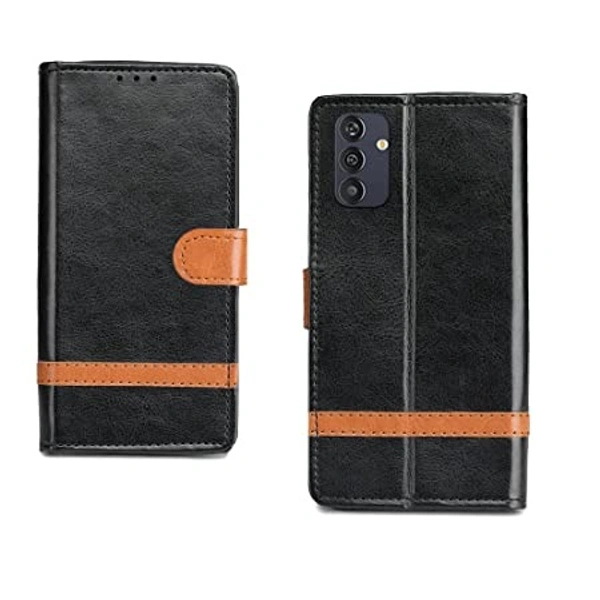 Inktree Samsung Galaxy M13 4G Flip Case | Premium Leather Finish Flip Cover |Complete Protection Flip Cover for Samsung Galaxy M13 4G - Black Stripe