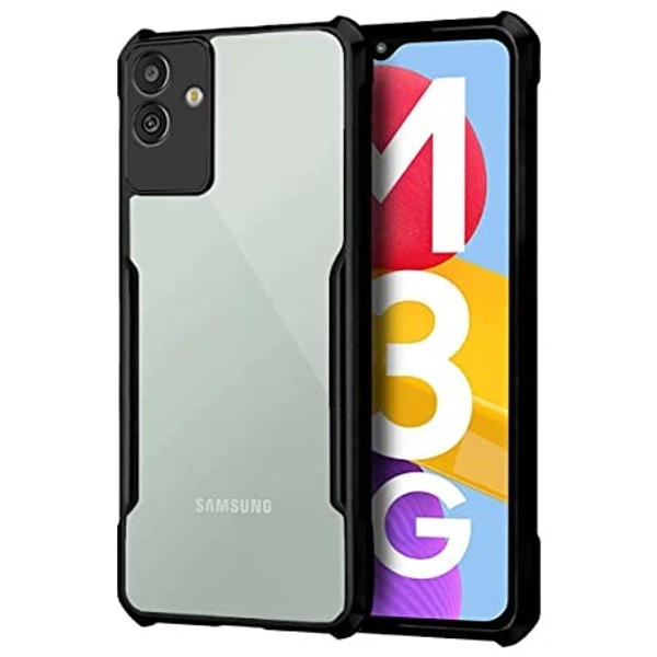 Fashionury Back Cover for Samsung Galaxy M13 5G Transparent Hybrid Hard PC Back TPU Bumper Impact Resistant Case (Black,Transparent)
