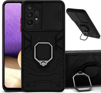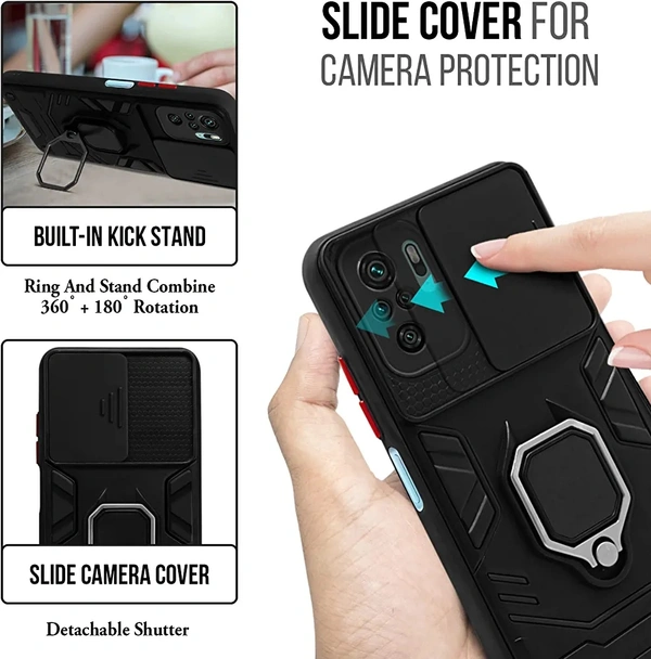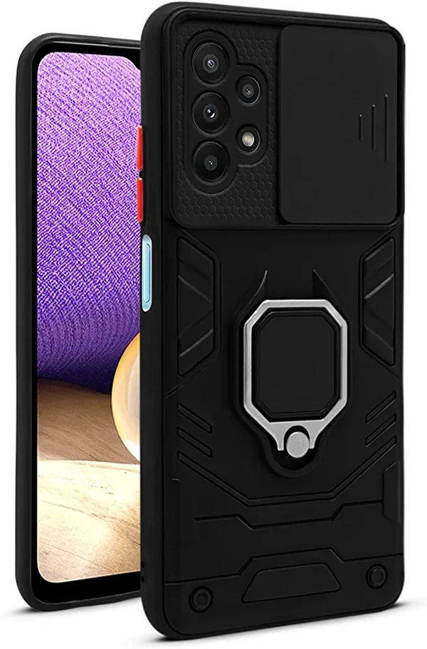 Jkobi Back Cover Case for Samsung Galaxy M32 5G (Hybrid Armor Case with Sliding Shutter Camera Protection | Magnetic Ring Holder & in-Built Kickstand | Black)
