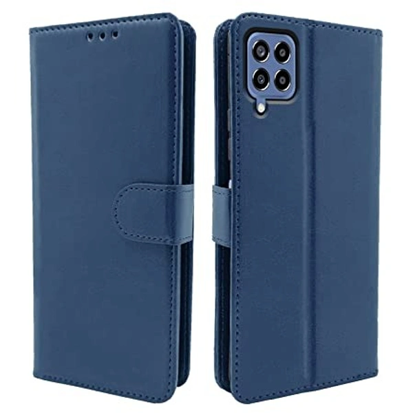 Pikkme Samsung Galaxy M33 5G Flip Cover | PU Leather Finish | 360 Protection | Wallet & Stand | Strong Magnetic Flip Case for Samsung Galaxy M33 5G (Blue)