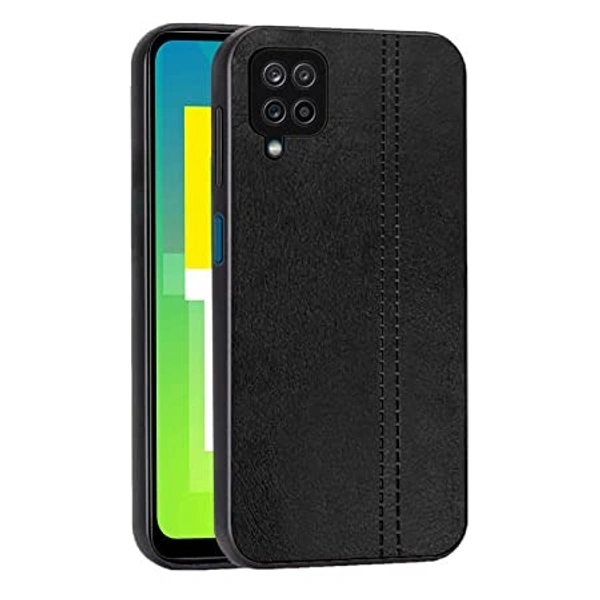 Amazon Brand - Solimo Leather Mobile Cover (Soft & Flexible Back case), for Samsung Galaxy M12-Black