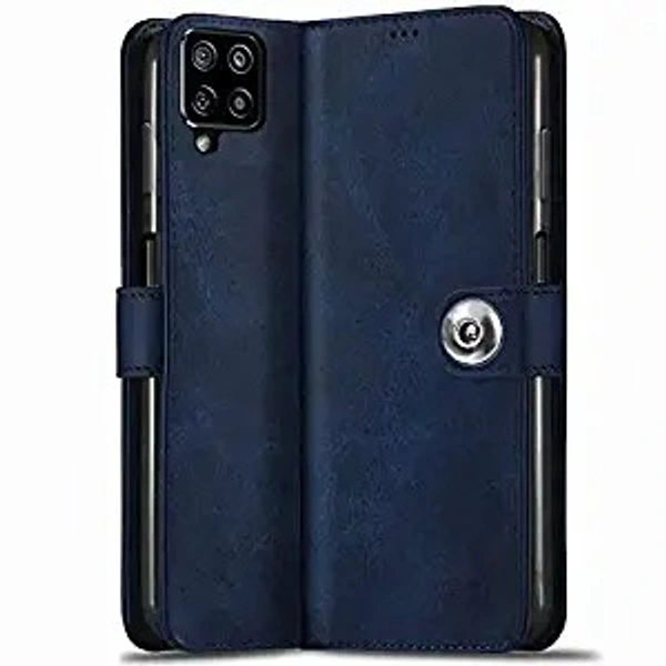 TheGiftKart Flip Back Cover Case for Samsung Galaxy M53 5G | Genuine Leather Finish | Designer Button | Inbuilt Pockets & Stand | Flip Cover for Samsung Galaxy M53 5G (Blue)