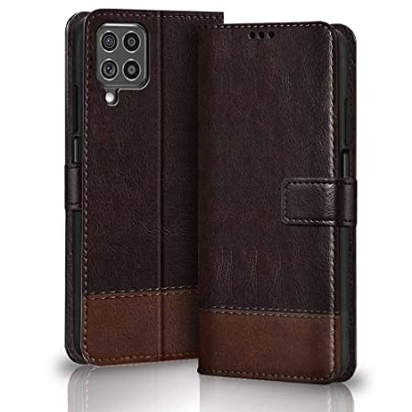 TheGiftKart Flip Back Cover Case for Samsung Galaxy M53 5G | Dual-Color Leather Finish | Inbuilt Stand & Pockets | Wallet Style Flip Back Case Cover for Samsung Galaxy M53 5G (Coffee & Brown)
