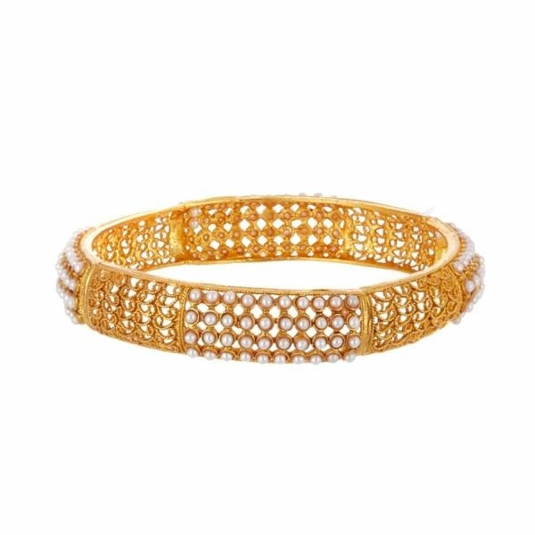 Zeneme Bangle Gold Plated Handmade Designer Pota Stone Studded Bangle Set Of 2 Jewellery For Women & Girls (White, )