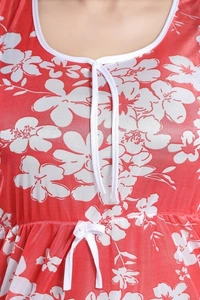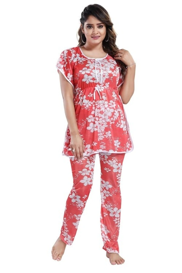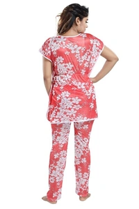 Women Peach Floral Print Satin Nighty