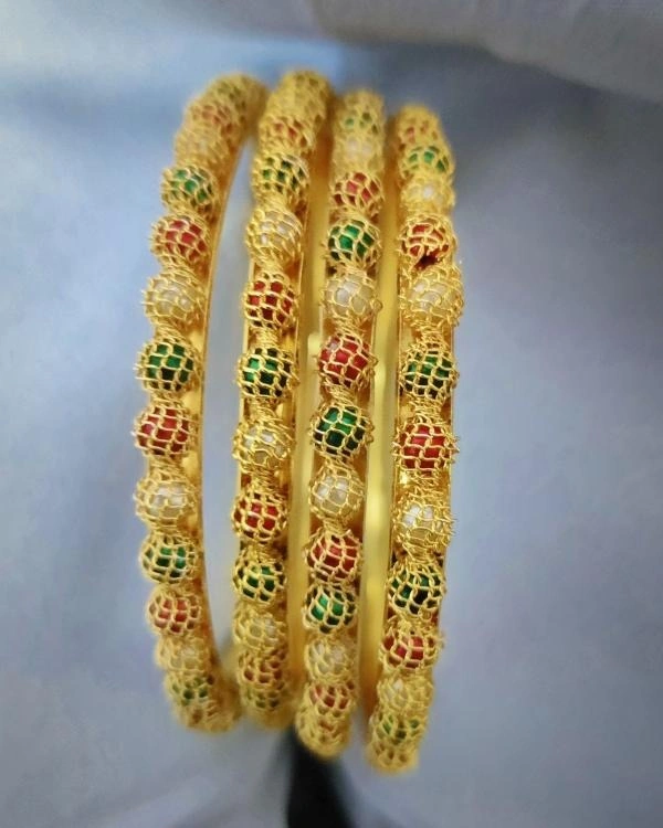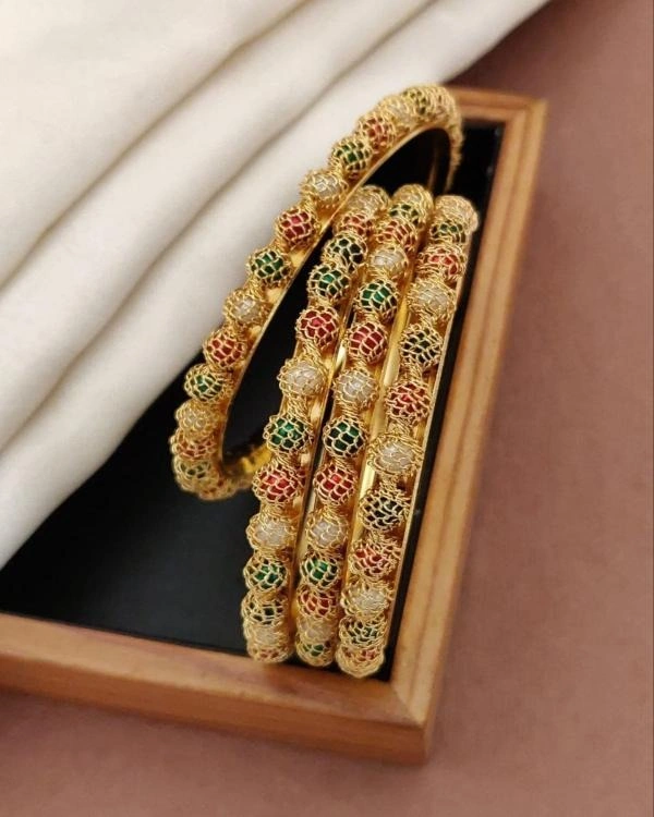 INDIAN LIFESTYLE Women's Designer Alloy Material Gold Plated Bnagles Set Of 4