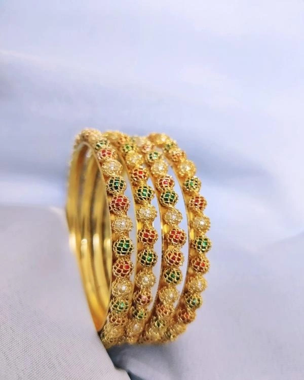 signer Alloy Material Gold Plated Bnagles Set Of 4