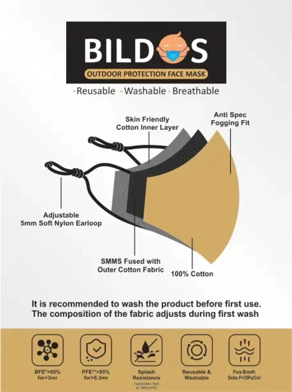 BILDOS 3 Layer Pure Cotton Cloth Mask with Adjustable Ear Loop 12 Pcs Cloth Masks Cloth Mask With Melt Blown Fabric Layer (Multicolor, Free Size, Pack of 12)
