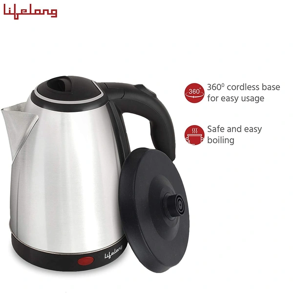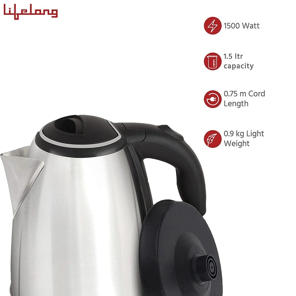 Lifelong LLEK15 Electric Kettle 1.5L with Stainless Steel Body, Easy and Fast Boiling of Water for Instant Noodles, Soup, Tea etc. (1 Year Warranty, Silver)