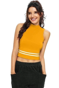 SWAGGER JNS Women's Sleeveless Crop Top High Neck Stretchy Fitted Casual Crop Tank Top