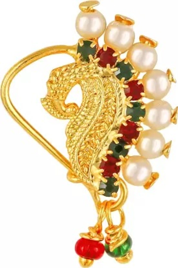 VIGHNAHARTA Pearl, Cubic Zirconia Gold-plated Plated Alloy Nose Ring