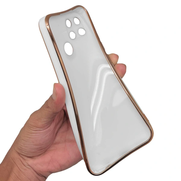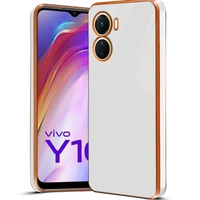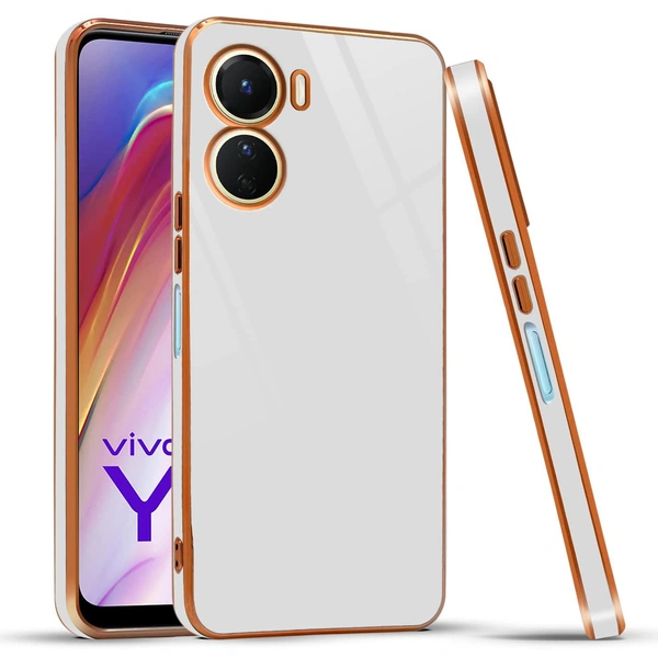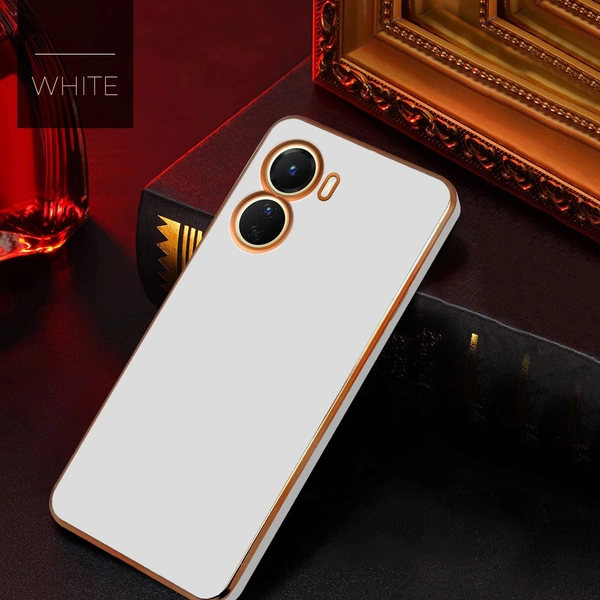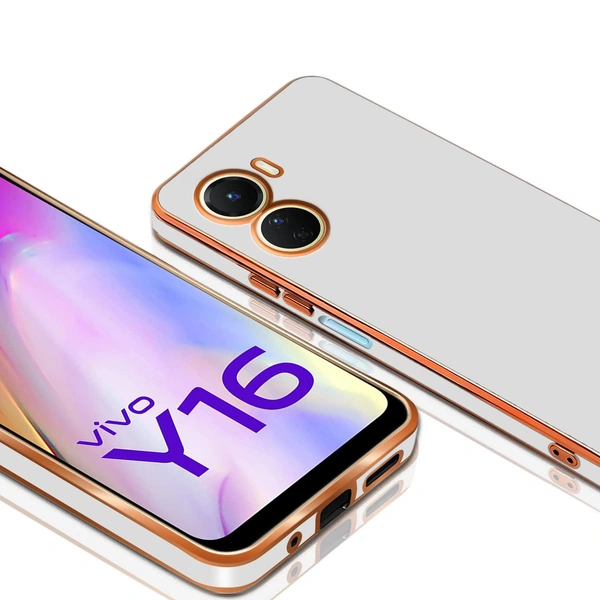 Mr Case 6D Chrome Back Cover Case for Vivo Y16 | (Gold Plated Frame | Glossy Backside -White