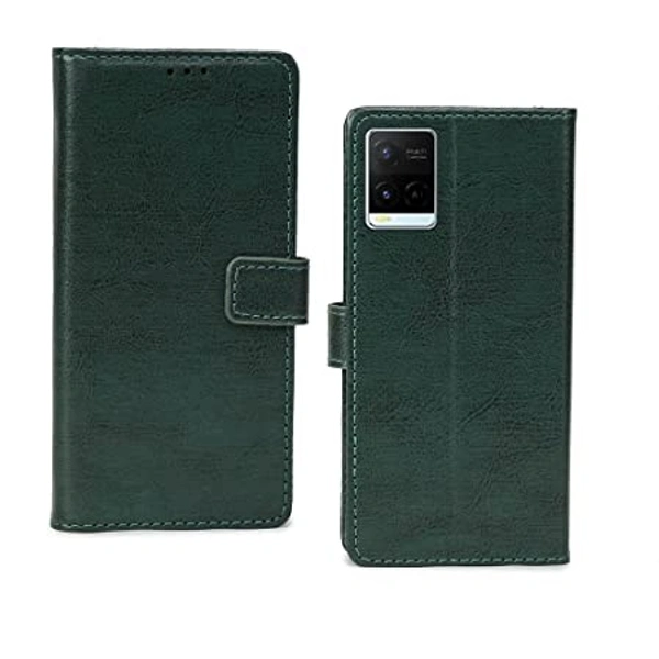 Inktree Vivo Y21 2021 Flip Case | Premium Leather Finish Flip Cover | with Card Pockets | Wallet Stand |Complete Protection Flip Cover for Vivo Y21 2021 - Vintage Green