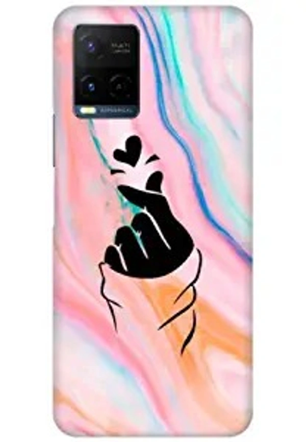 COBERTA Back Cover for Vivo Y21 / Vivo Y33s (Polycarbonate | Multicolor | Pink Marble Korean Heart)