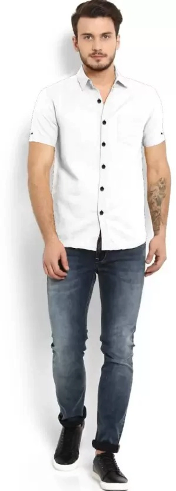 Men Slim Fit Solid Spread Collar Casual Shirt