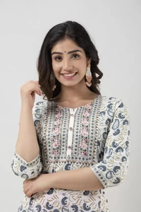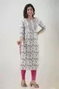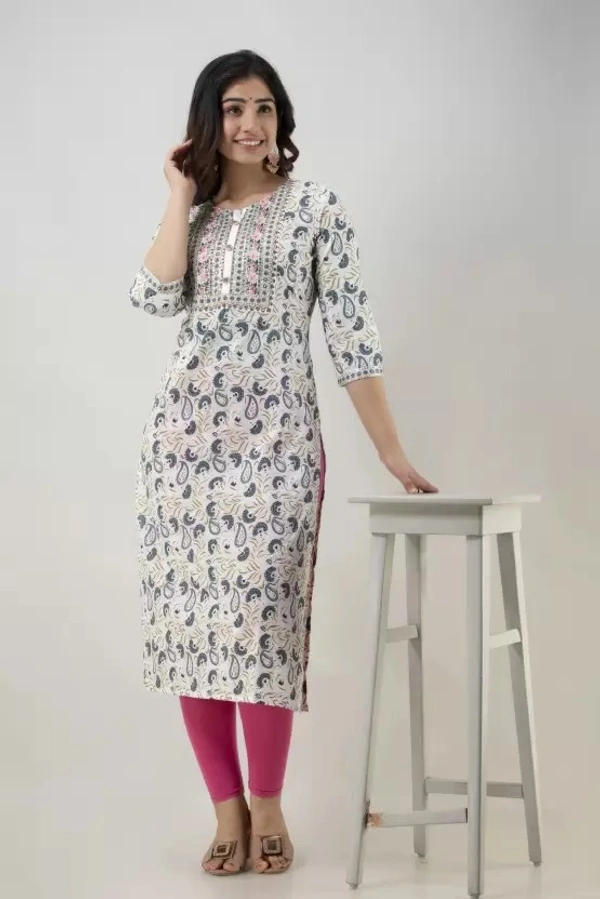 Women Embroidered Cotton Blend Straight Kurta (Light Blue)