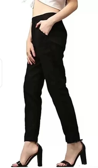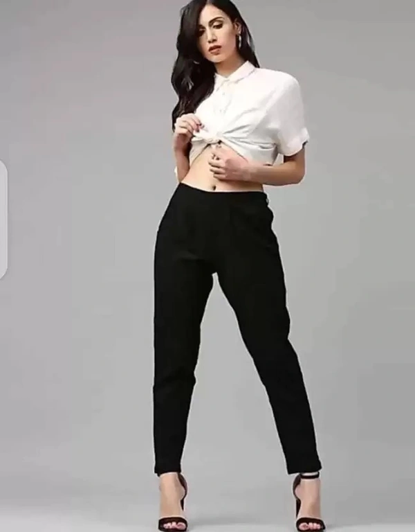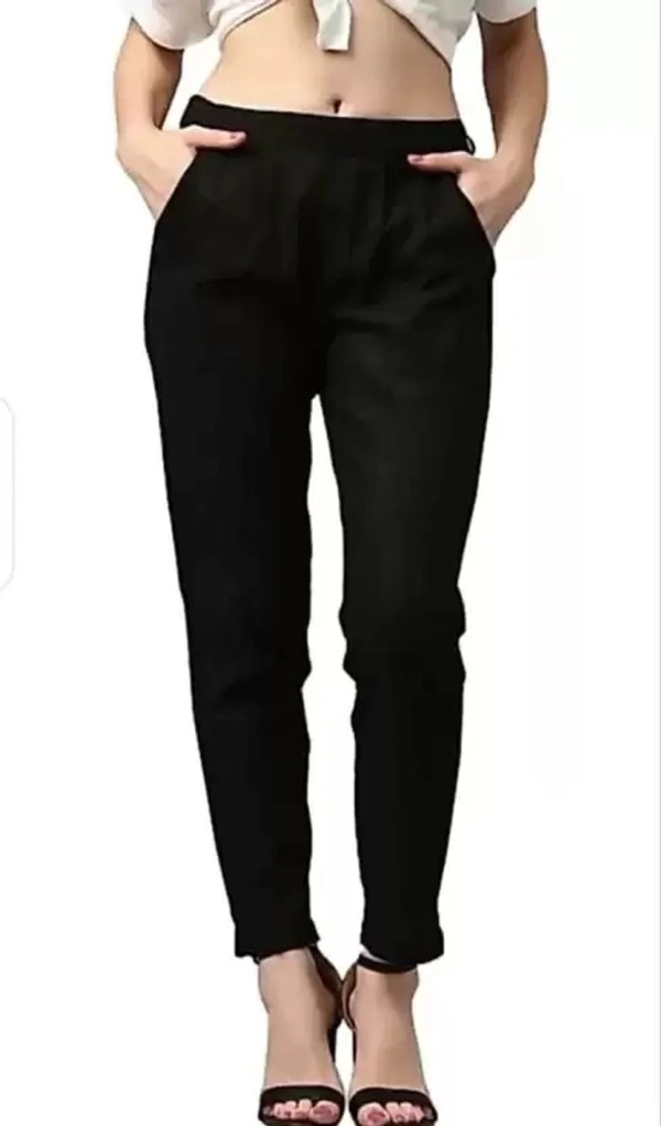 Women Regular Fit Black Cotton Blend Trousers
