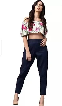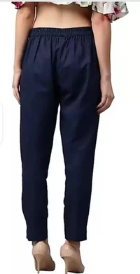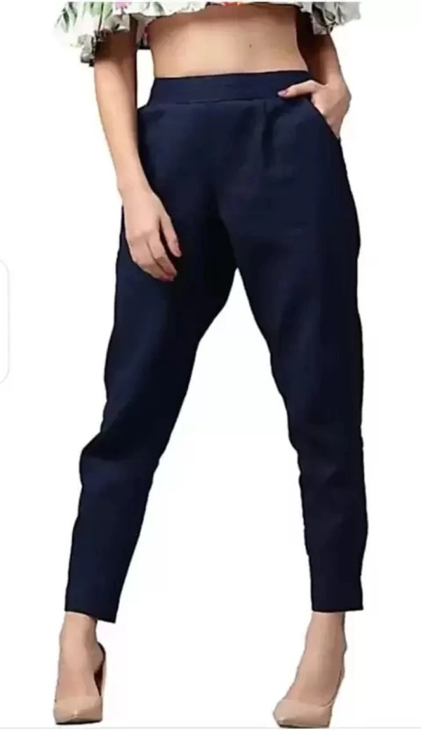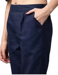 Women Regular Fit Dark Blue Cotton Blend Trousers