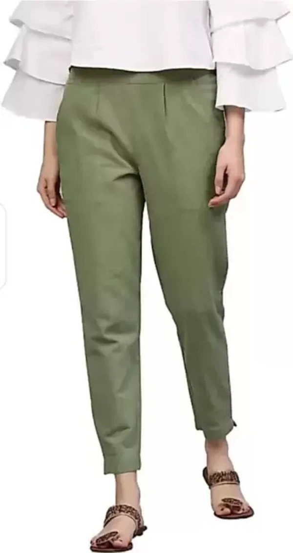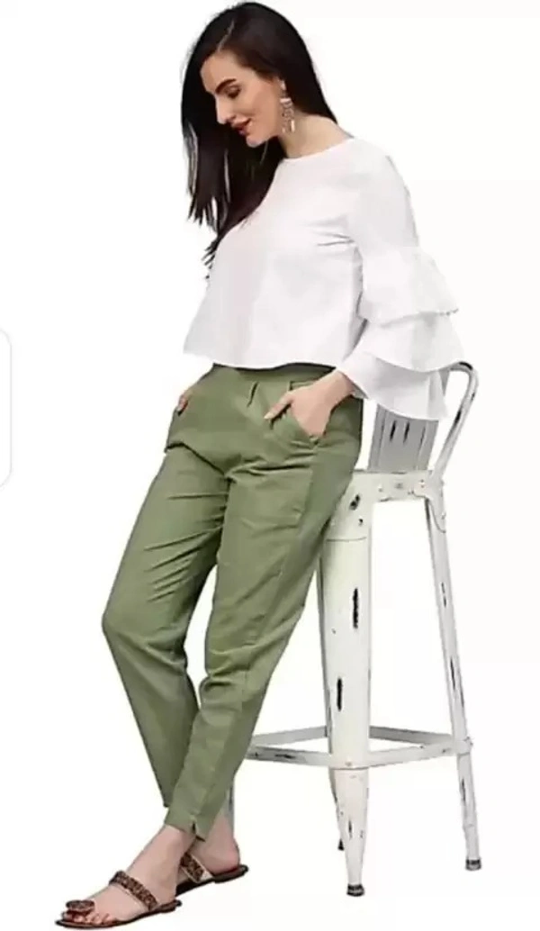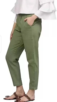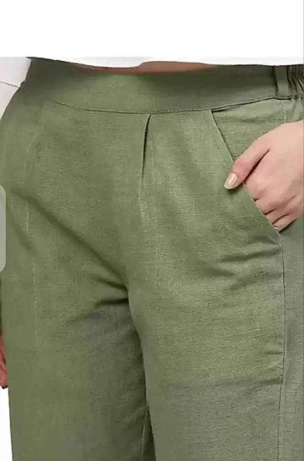 Women Regular Fit Green Cotton Blend Trousers