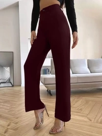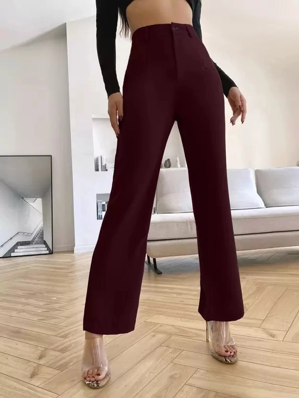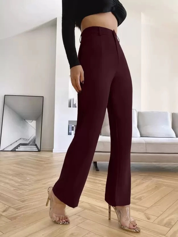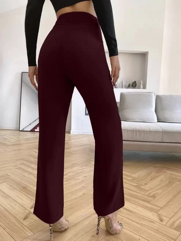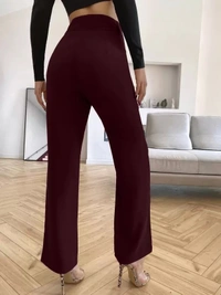 Women Regular Fit Maroon Cotton Blend Trousers