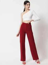 Women Regular Fit Maroon Viscose Rayon Trousers