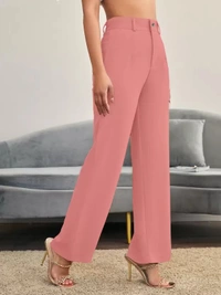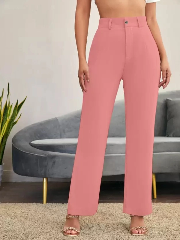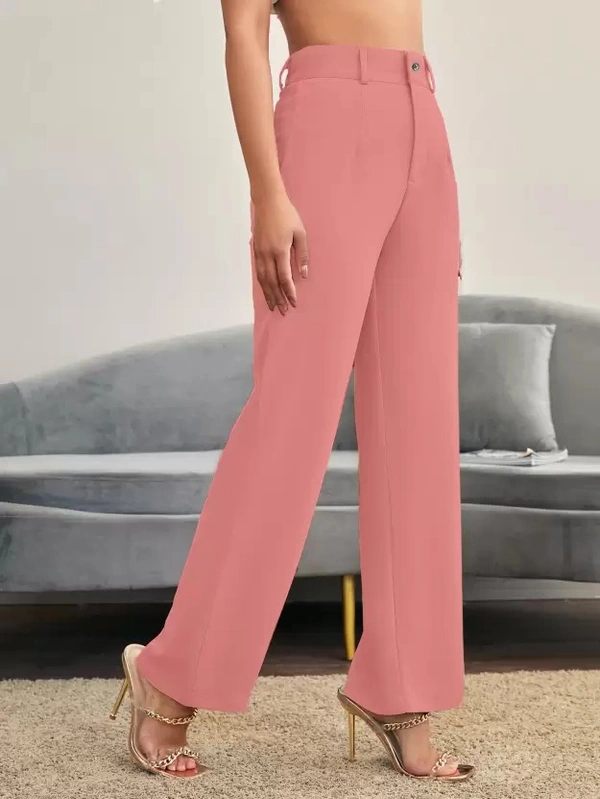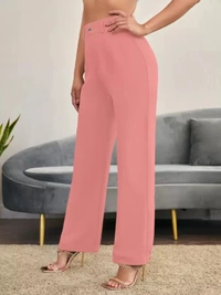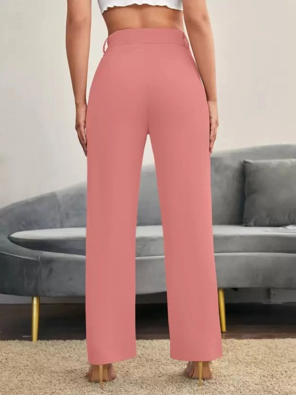 Women Regular Fit Pink Cotton Blend Trousers