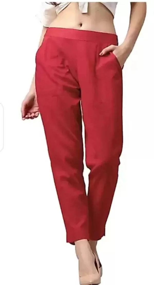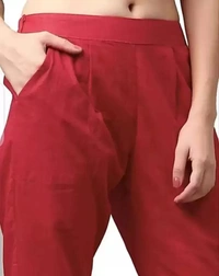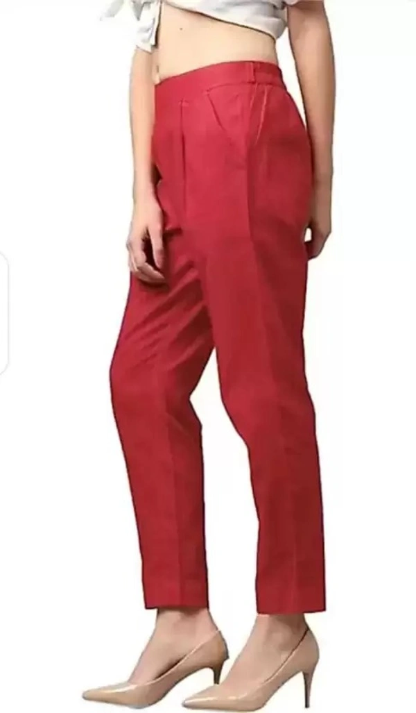 Women Regular Fit Red Cotton Blend Trousers