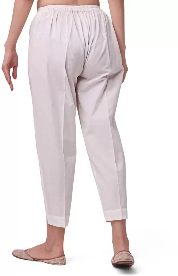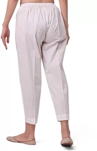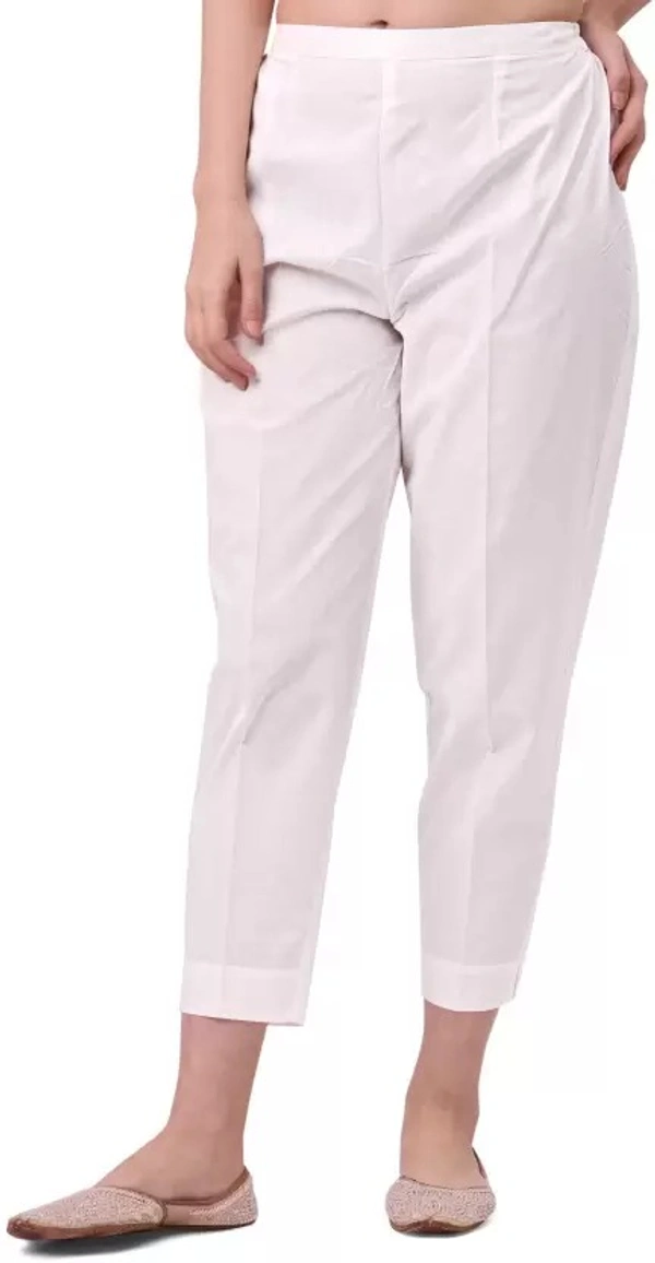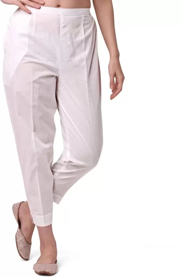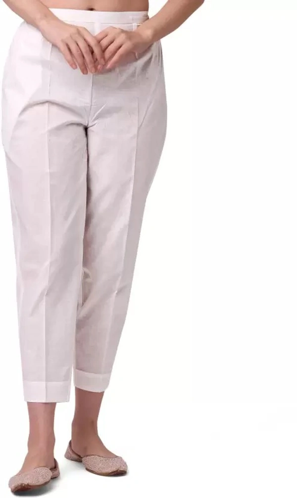 Women Regular Fit White Cotton Blend Trousers