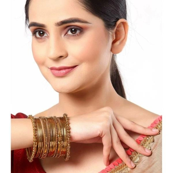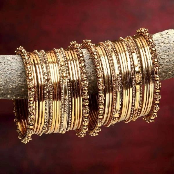 ZENEME Women Set of 40 Gold Tone Oxidised Textured Bangle
