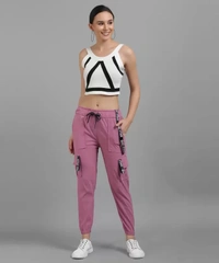Women Slim Fit Pink Cotton Blend Trousers