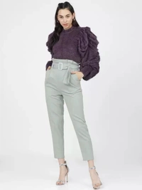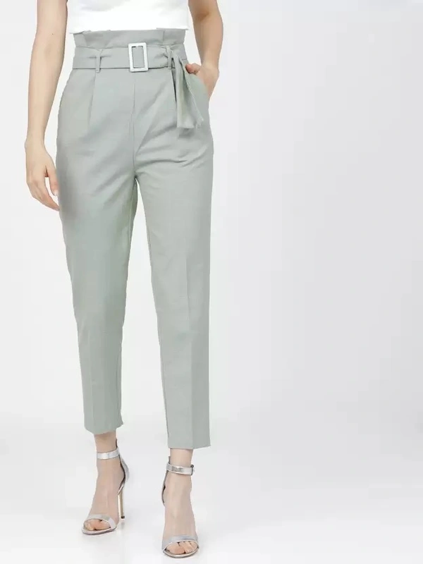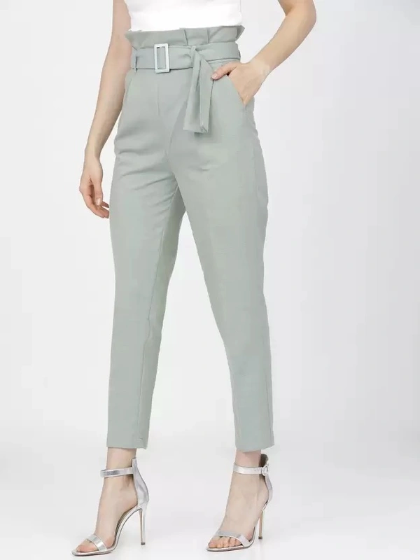 Women Tapered Green Viscose Rayon Trousers