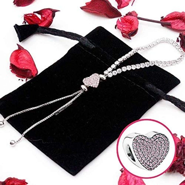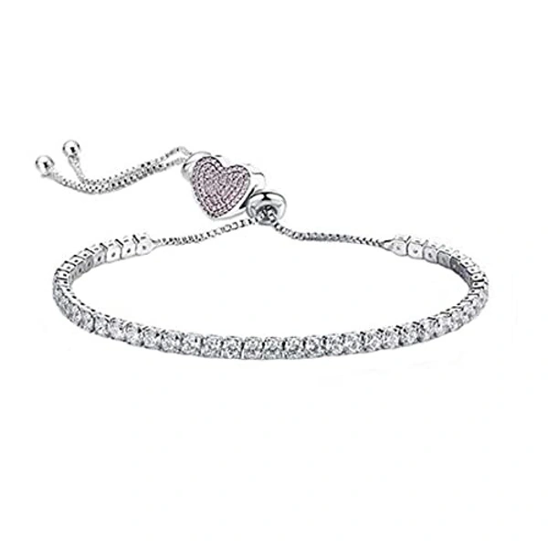 Yellow Chimes Valentine Gift for Girls White Platinum Plated Base Metal Crystal Swiss Cubic Zircon Adjustable Chain Charm Bracelet for